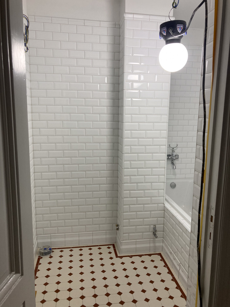 Jag åtar mig företrädelsevis plattsättningsarbeten i tidstypiska stilar. Jag har stor erfarenhet av att återskapa bl.a funkisstil i badrum samt i sekelskiftesanda. Det sistnämnda blir ofta i en anglosaxisk stil, då mycket få svenska hem hade våtrum i den bemärkelsen under sekelskiftet.