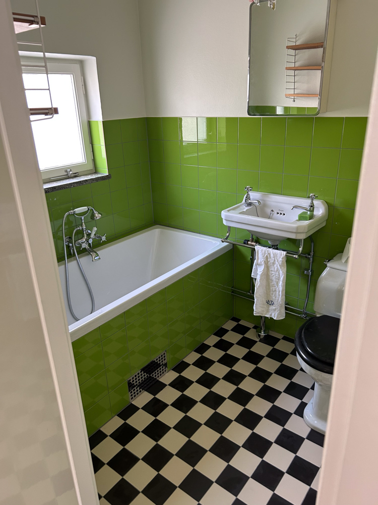 Enligt min mening var badrummen finare förr. Hantverket runt de lite mindre plattorna är betydligt roligare och mer inspirerande än montage av storformatsplattor i stenimitation, där målet ofta är att efterlikna nutida hotellbadrum.